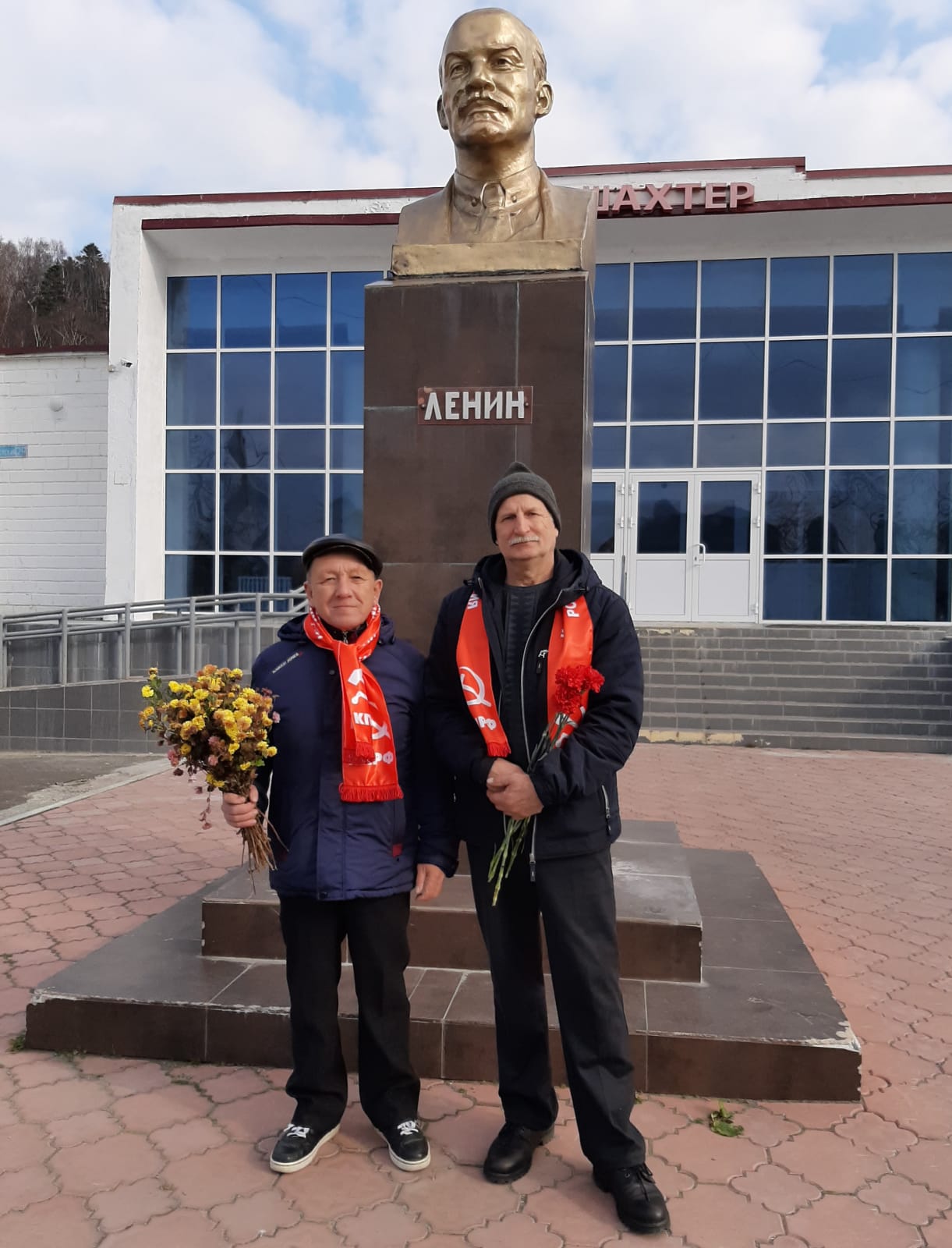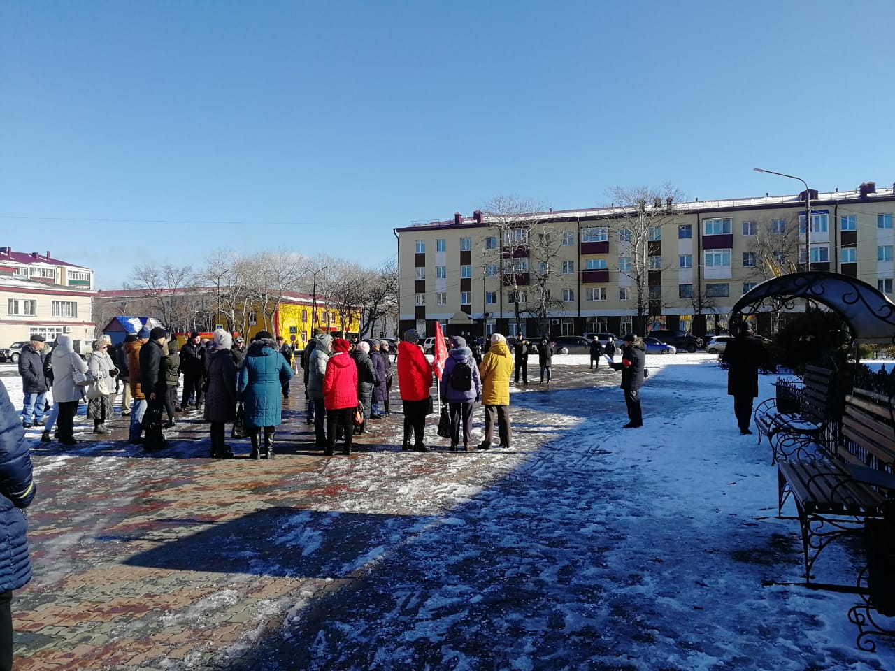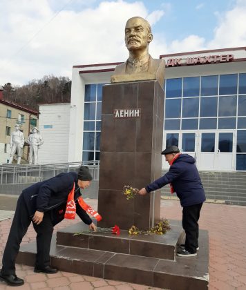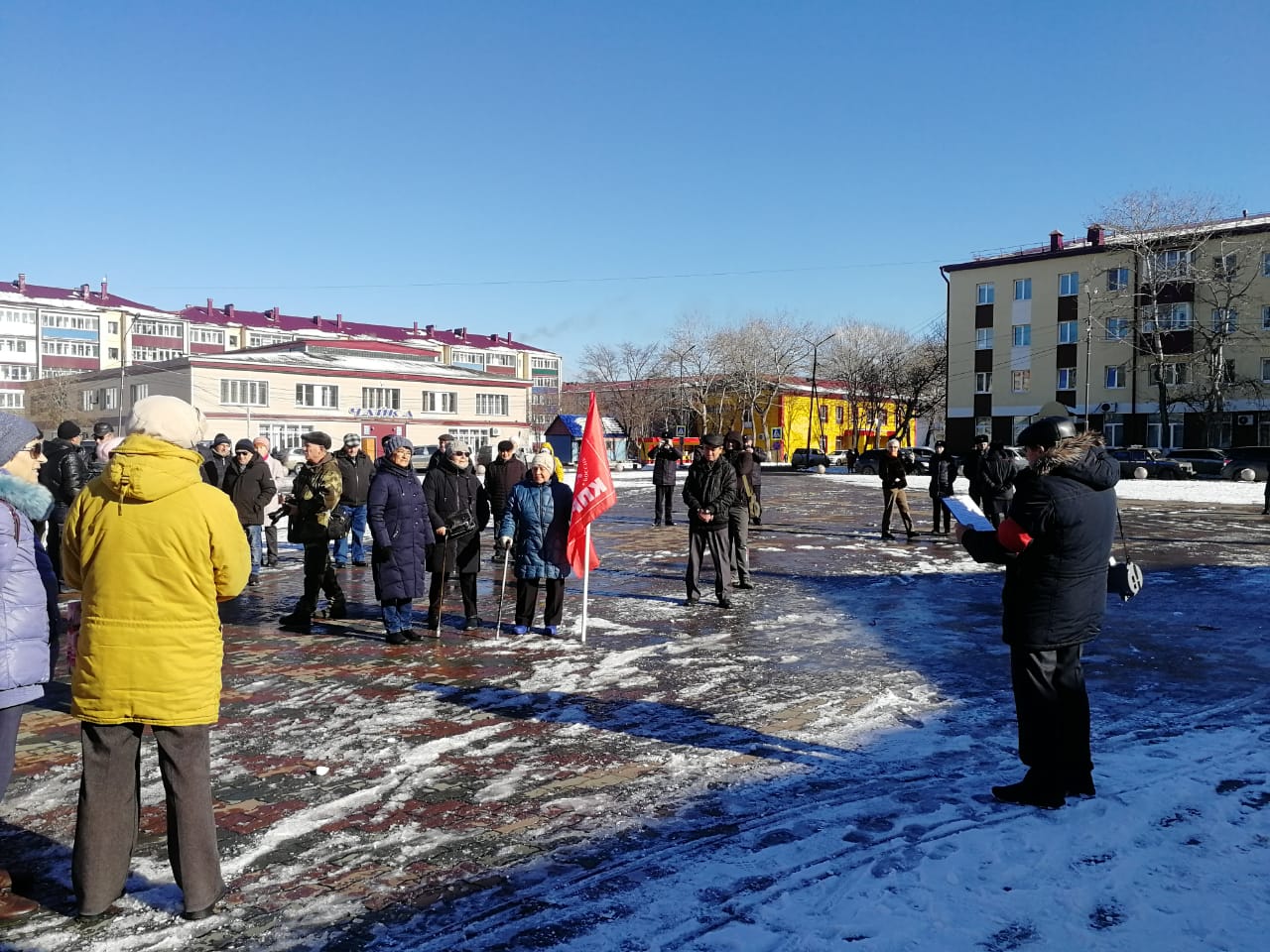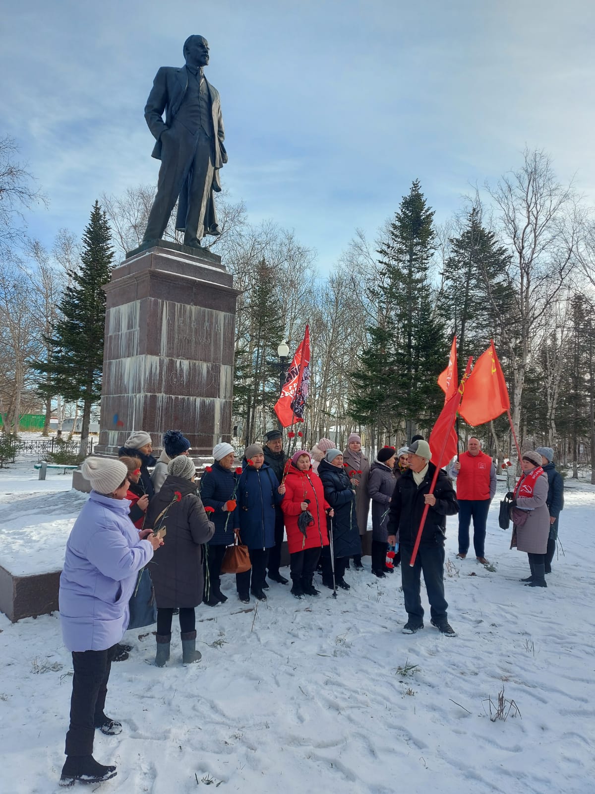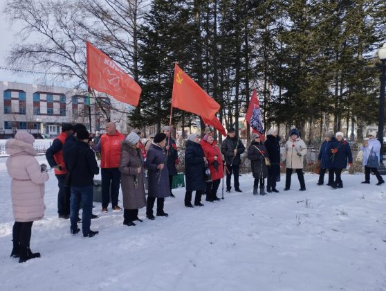 В Охе снег, но это не помешало коммунистам собраться на праздничное мероприятие.