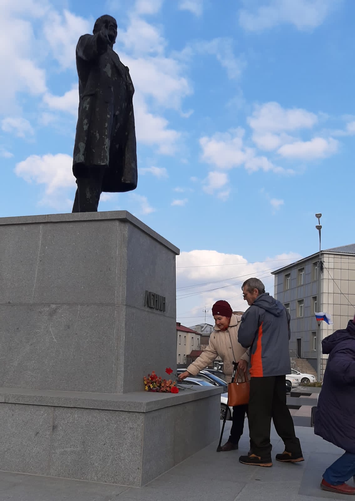 В городе Анива старались не отставать от столицы региона, и провели праздничное возложение цветов.