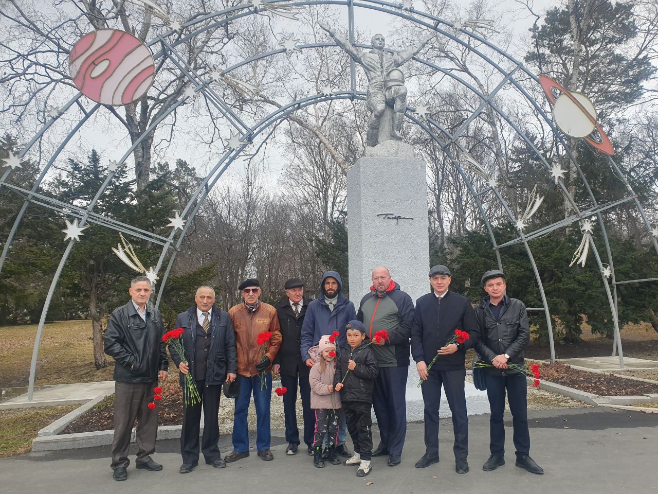 Сегодня в г. Невельске коммунисты местного отделения во главе с первым секретарем, депутатом Собрания Невелского городского округа Кудиным Иваном Степановичем  возложил цветы к барельефу Юрию Гагарину в г. Невельске.