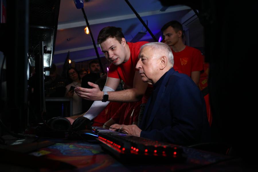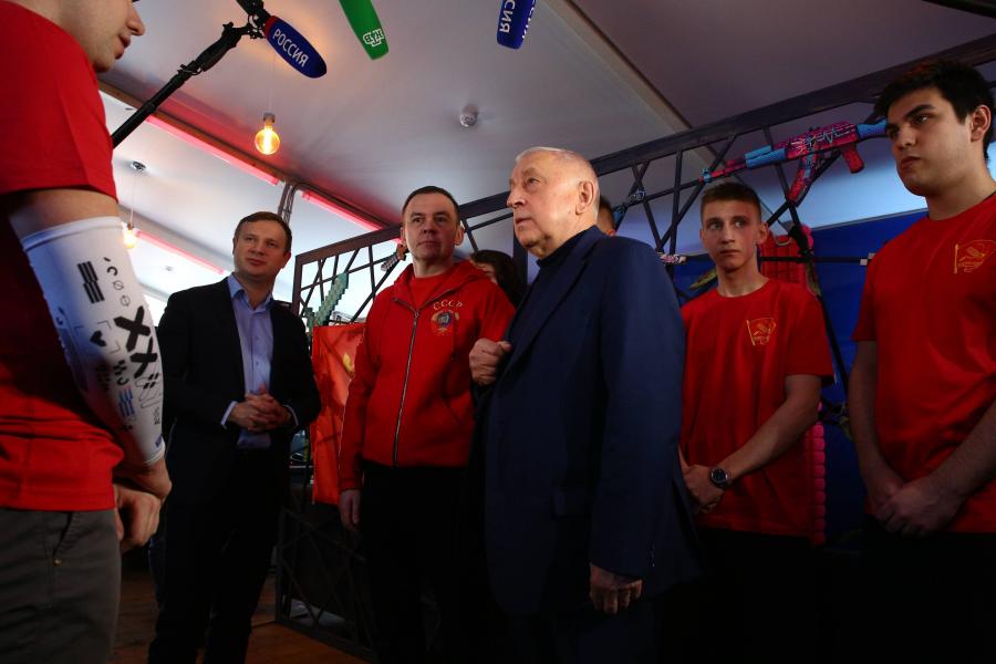 Николай Михайлович поприветствовал команды, рассказал о поддержке КПРФ молодого вида спорта, познакомился с новыми разработками российских компьютерных игр и поучаствовал в создании виртуальной космической ракеты в VR очках.