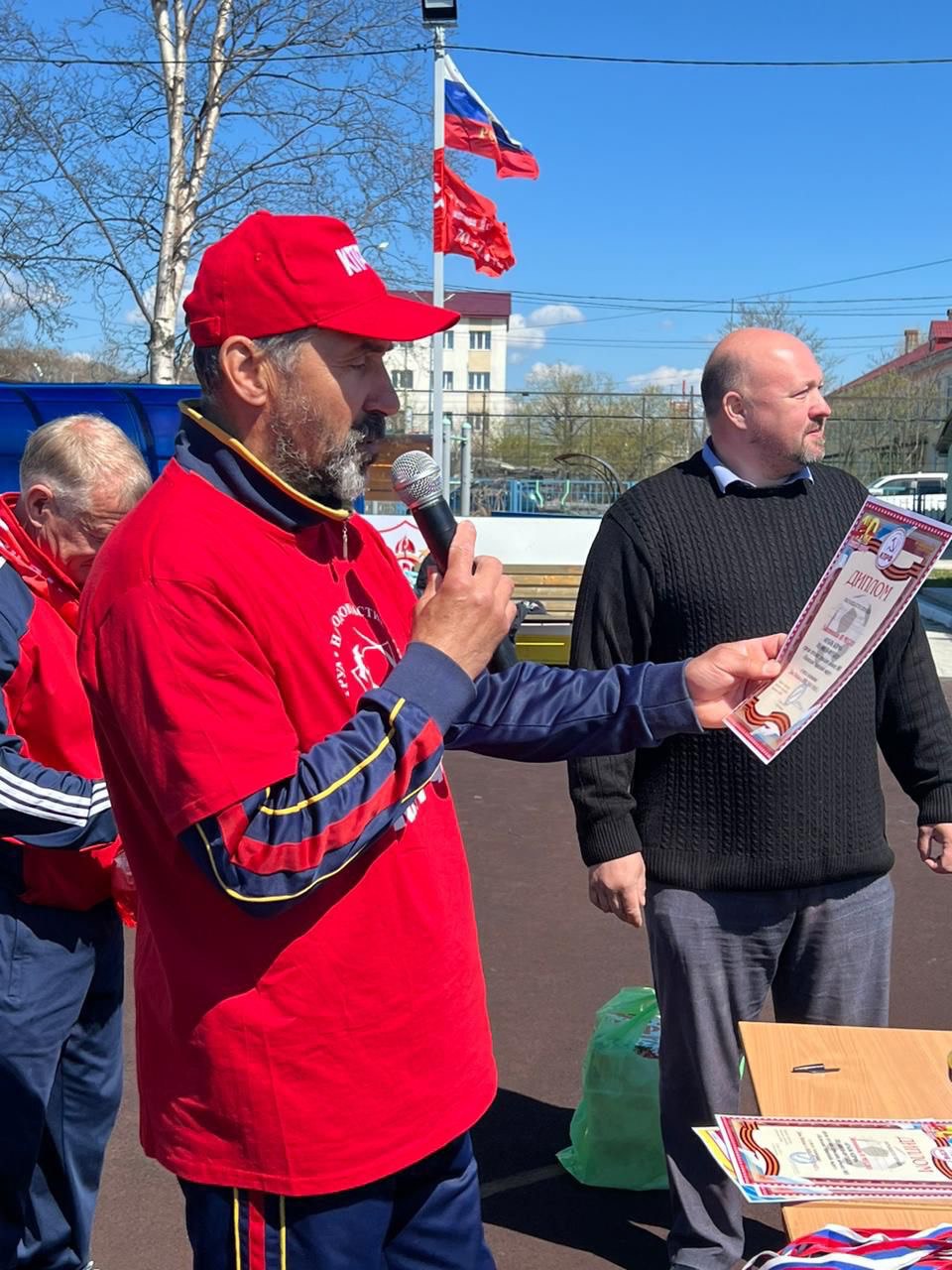 Депутат областной Думы, первый секретарь обкома КПРФ Павел Ашихмин выступил с приветственной речью, поздравил всех участников и болельщиков с праздником Великой Победы, пожелал ребятам успехов в учебе и спорте.