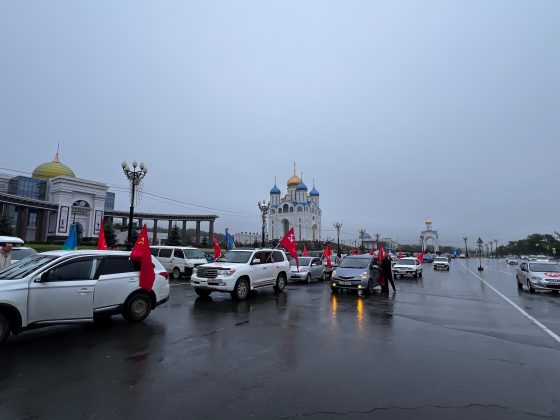 В Южно-Сахалинске автомобильная колонна проехала по главным улицам города. Горожане выражали свою солидарность с участниками патриотической акции: пешеходы взмахами рук и улыбками, водители —приветственными звуковыми сигналами.