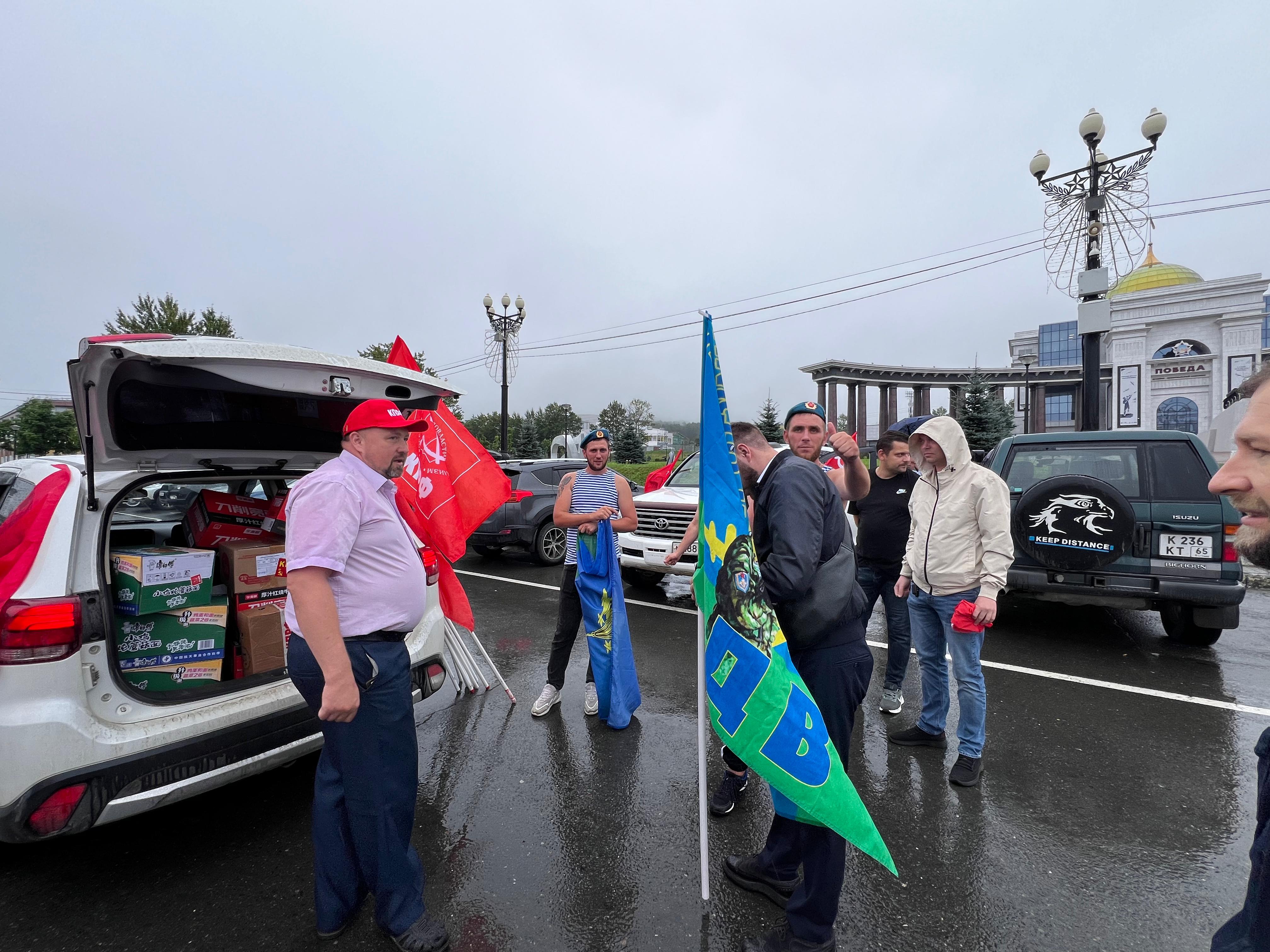 В конце маршрута колонна остановилась у фонда «Защитники Отечества» для очень важной части акции: передачи гуманитарной помощи для участников специальной военной операции в пункт сбора. Сахалинские коммунисты и комсомольцы, так же, как и участницы Всероссийского женского союза «Надежда России» оказывают помощь нашим ребятам на СВО на постоянной основе. Многие наши товарищи с оружием в руках защищают Родину на передовой. Так что передача гуманитарной помощи в День Воздушно-десантных войск стала достойным завершением мероприятия.