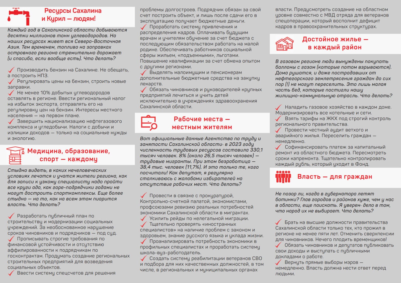 Тезисы предвыборной программы Павла Ашихмина кандидата на должность губернатора Сахалинской области от КПРФ
