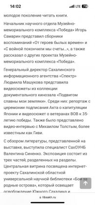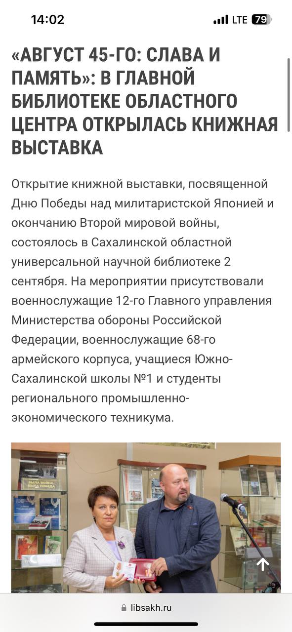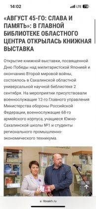 02 сентября 2024 я принял участие в открытии выставки, посвящённой Дню Победы над милитаристской Японией и окончанию Второй мировой войны в Сахалинской областной универсальной научной библиотеке.