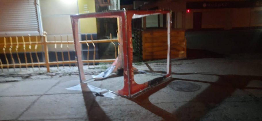 Вандалы сначала разрезали😵 агитационный куб, который был важной частью кампании прямо под камеру с телефона оппонента Тяна, ветерана МВД РФ Шахвалада Гасумова.