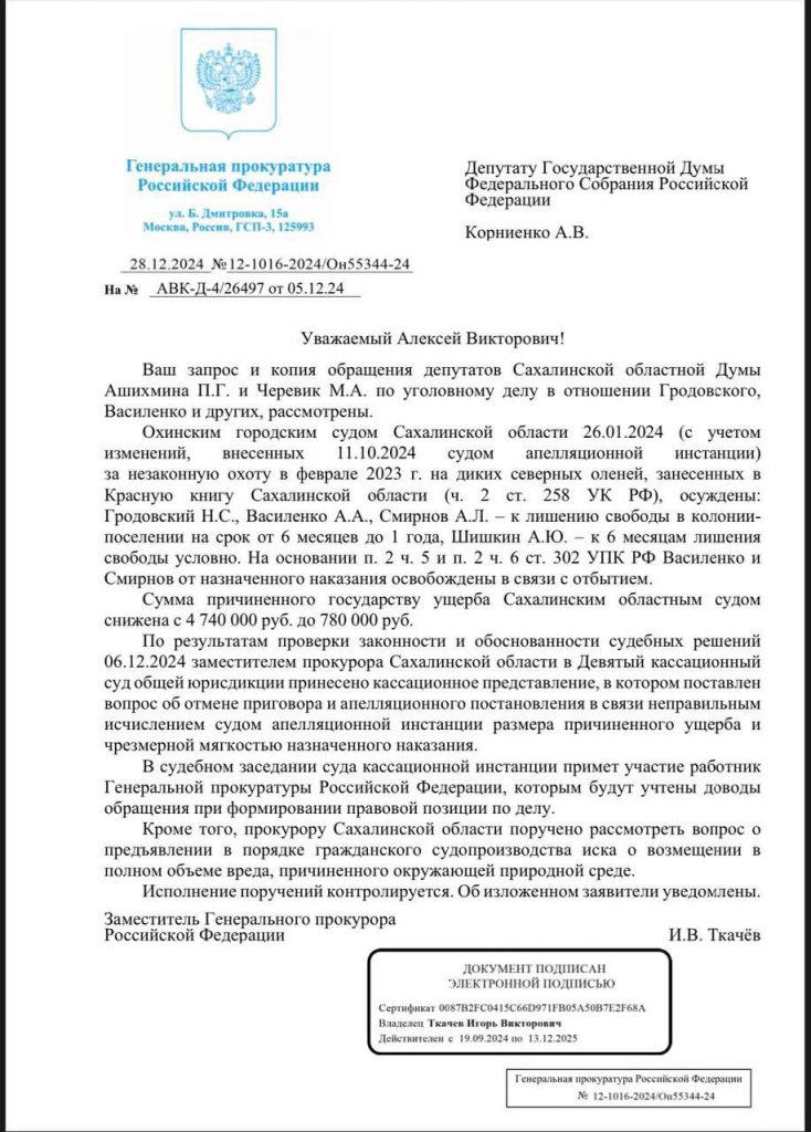 К сожалению, апелляционная инстанция приняла решение, которое мы считаем несправедливым: сроки наказания для преступников были уменьшены, а размер ущерба значительно снижен. Это вызвало у нас, (https://t.me/ashikhmin_deputat65/318) как и у многих неравнодушных граждан, глубокое возмущение.