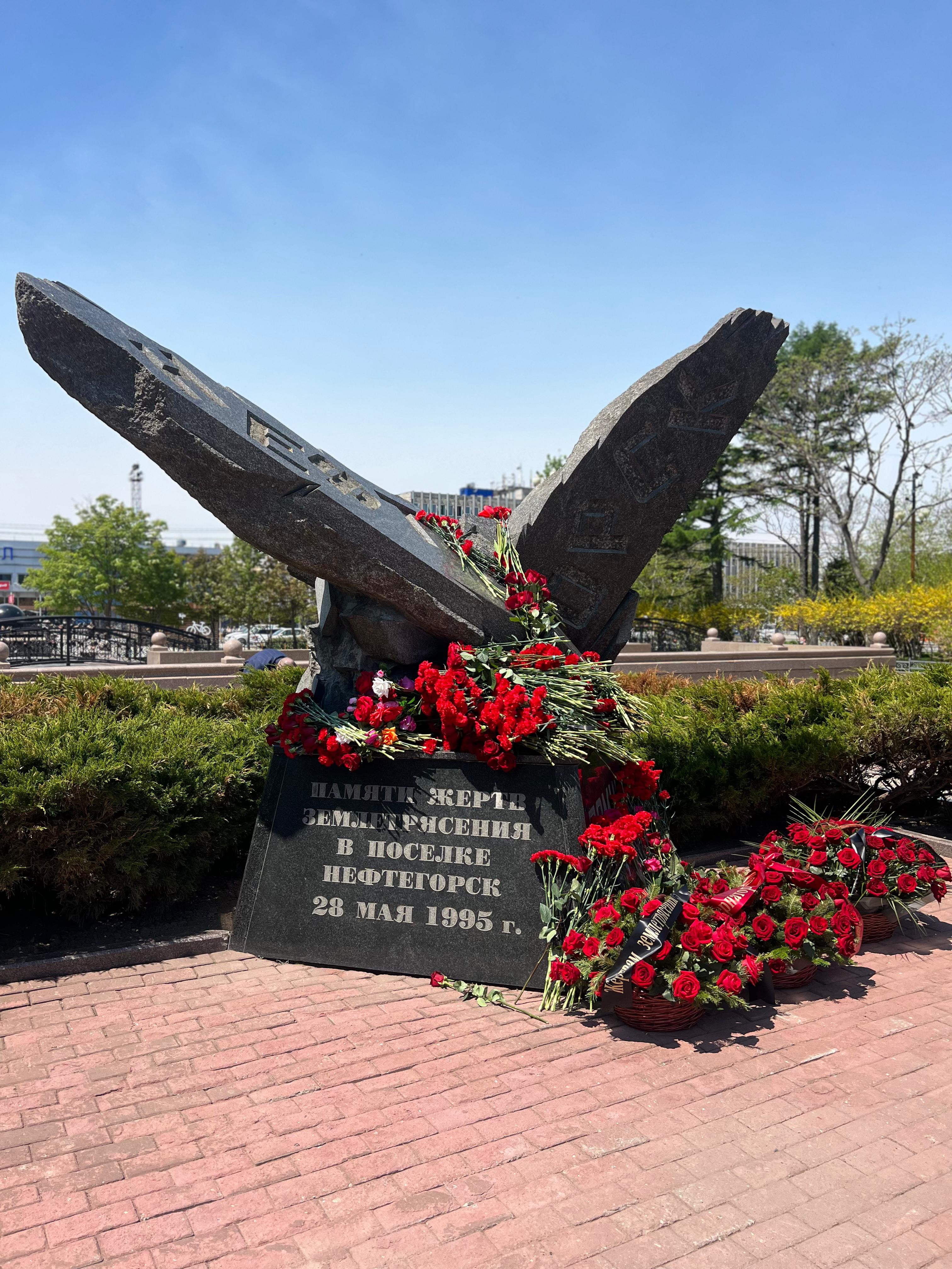 28 мая 2025 года в цветочных магазинах Охи закончились гвоздики. И охинцы несли к мемориалу памяти жертв Нефтегорской трагедии розы. Несли в течение всего дня, уже после окончания траурного митинга, поодиночке и целыми семьями.