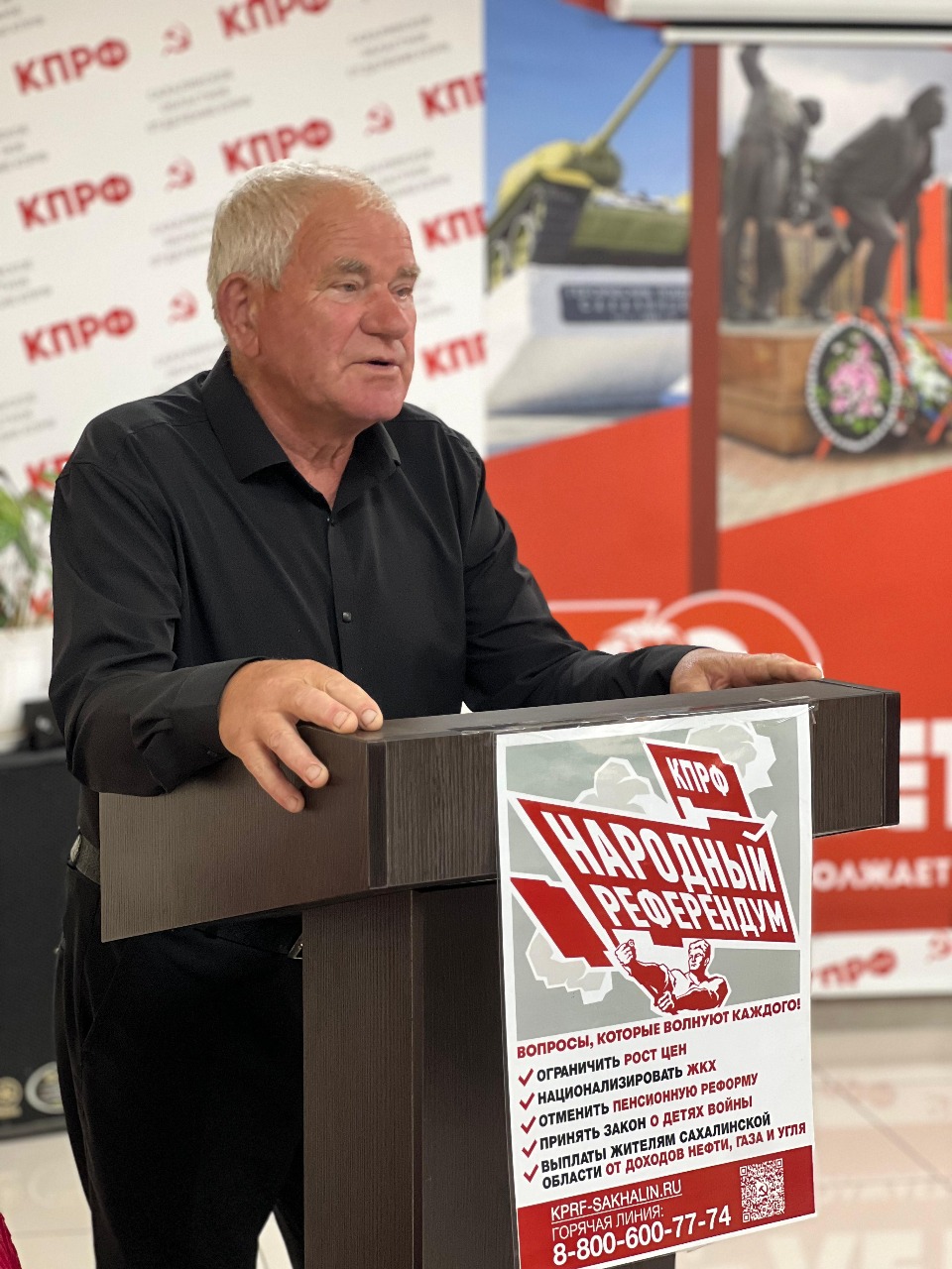 Заметное место в докладе тов. Варанкина занял Народный референдум, проводимый по инициативе КПРФ по всей стране. Уже сейчас тысячи сахалинцев и курильчан приняли в нем участие, выразив свое мнение по ключевым и актуальным для каждого вопросам. Но необходимо это число увеличить, вовлечь в голосование как можно больше людей, причем, не только из числа сторонников партии.