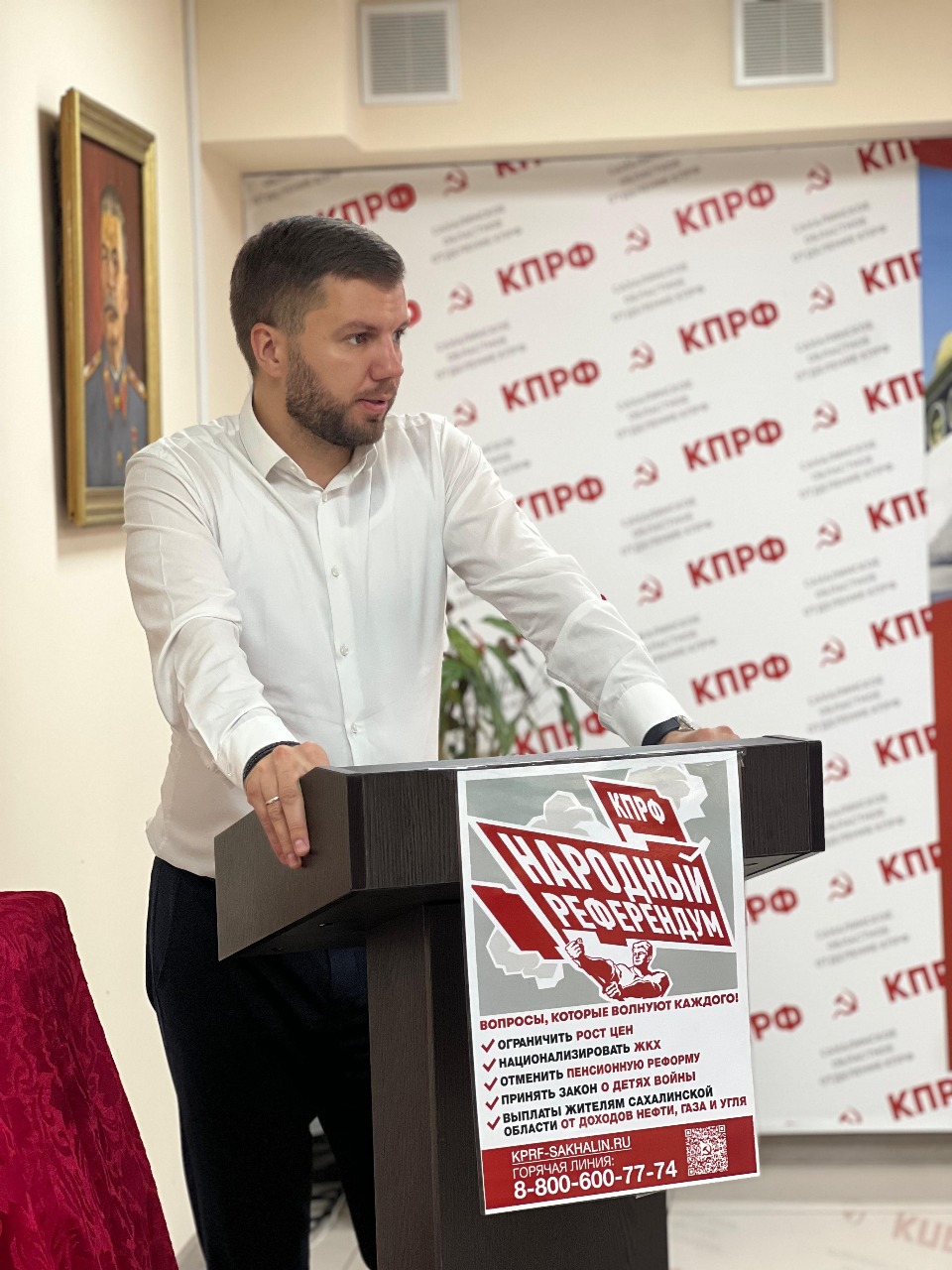 Антон Андреевич выступил с докладом о задачах Сахалинского областного отделения КПРФ на современном этапе.