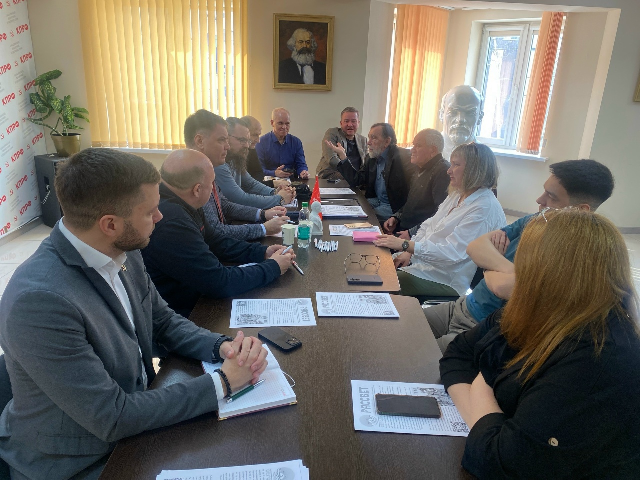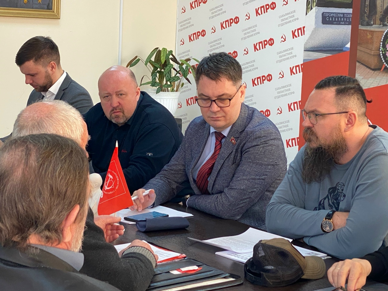 Избранные от КПРФ народные депутаты, руководители партийных ячеек прибыли в Южно-Сахалинск из Поронайска, Долинска, Корсакова, Макарова и Курильска чтобы обсудить подготовку к предстоящим выборам депутатов в Государственную Думу. Встреча проходила с участием секретаря ЦК КПРФ, представителя Федерального Собрания Алексея Корниенко.