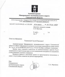 Депутат Макаровского Собрания от КПРФ Сергей Мустяца направил официальное обращение в прокуратуру района. Он требует принять меры прокурорского реагирования и восстановить освещение как во дворах, так и на улицах всего города.