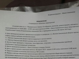 В Южно-Сахалинскую администрацию подана очередная заявка на проведение митинга против коррупции